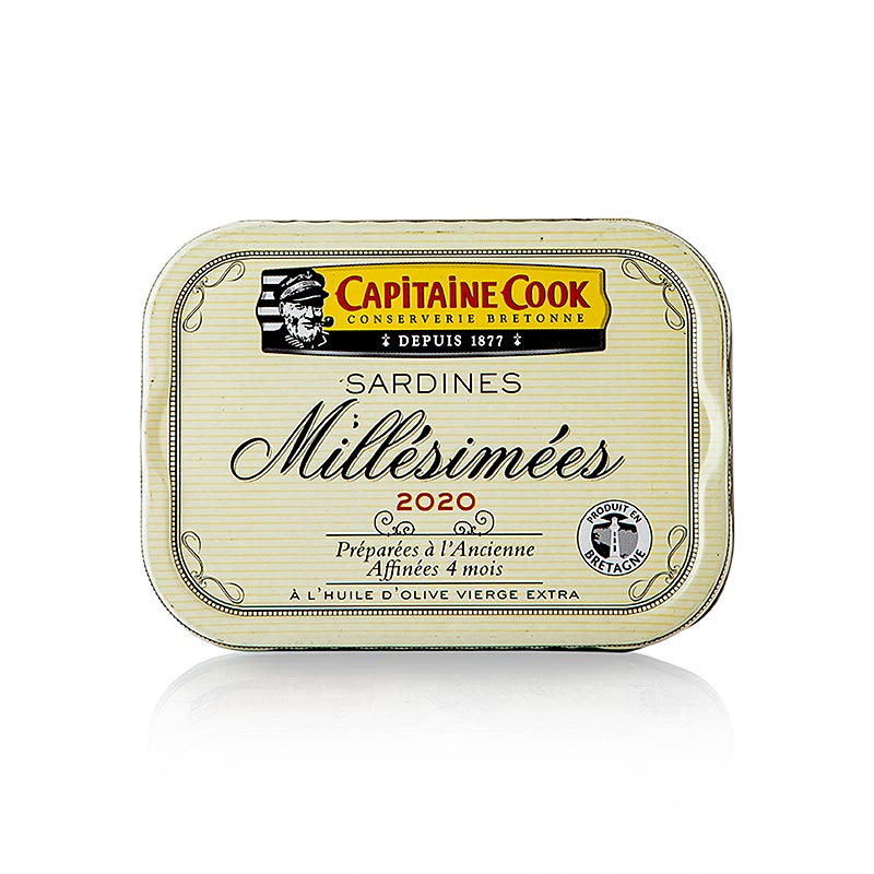 Jahrgangs-Ölsardinen gelten unter den Sardinenliebhabern als große Delikatesse. Die Mindesthaltbarkeit beträgt bei diesem Produkt 6 Jahre ! Die ca. 5 ausgesuchten Sardinen sind mild im Geschmack. Die Ware wurde leicht mit Fleur de Sel abgeschmeckt und in bestem Olivenöl eingelegt. Die Sardinen sind saftig und von zarter Konsistenz und könnten so im Ganzen gegessen werden. In jedem Jahr der Lagerung werden diese Sardinen besser, da die Hochzeit zwischen Olivenöl und Sardine sich nur langsam anbahnt, sich dann aber eine unvergleichbar harmonische Beziehung entwickelt. Die Produktion von Jahrgangssardinen ist limitiert